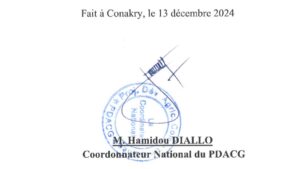 À l’attention de : Monsieur le Coordonnateur National du Projet de Développement de l’Agriculture Commerciale en Guinée (PDACG).