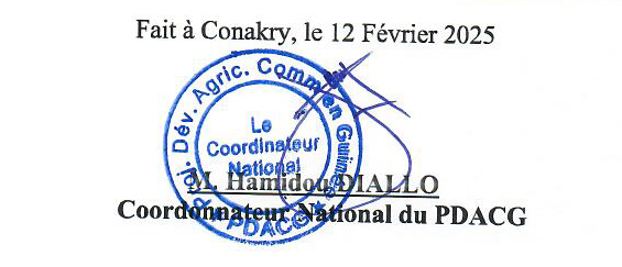 À l’attention de : Monsieur le Coordonnateur National du Projet de Développement de l’Agriculture Commerciale en Guinée (PDACG).