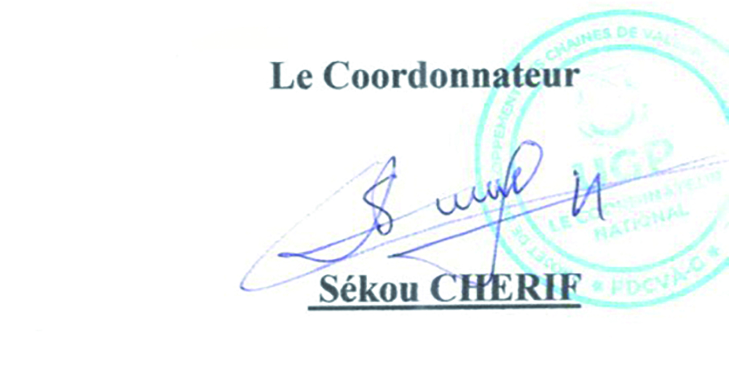 Home / PDCVA-G : Avis Spécifique de Passation de Marché - Acquisition, installation d’équipements post-récolte et la formation des utilisateurs, en trois (03) lots distincts / SIGNATURE PDCVA-G