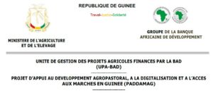 Le Gouvernement de la République de Guinée a reçu un financement de la Banque Africaine de Développement afin de couvrir une partie du coût du Projet d’Appui au Développement agropastoral, à la Digitalisation et à l’Accès aux Marchés en Guinée (PADDAMAG) et a l’intention d’utiliser une partie des sommes qui seront accordées au titre de ce prêt pour financer le contrat pour le recrutement d’un(e) Spécialiste en Chaînes de valeurs agricoles du PADDAMAG.
