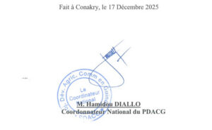 À l’attention de : Monsieur le Coordonnateur National du Projet de Développement de l’Agriculture Commerciale en Guinée (PDACG).