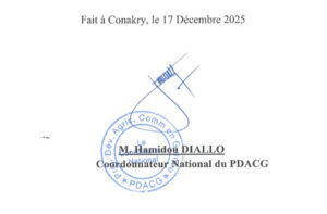 À l’attention de : Monsieur le Coordonnateur National du Projet de Développement de l’Agriculture Commerciale en Guinée (PDACG).