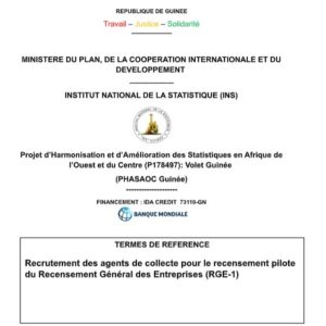 Home / Accueil / PHASAOC Guinée: TERMES DE REFERENCE / Recrutement des agents de collecte pour le recensement pilote du Recensement Général des Entreprises (RGE-1)
