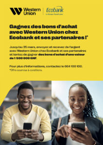 Gagnez des bons d’achat avec Western Union chez Ecobank et ses partenaires !* Share Facebook Twitter Google + Stumbleupon LinkedIn Pinterest